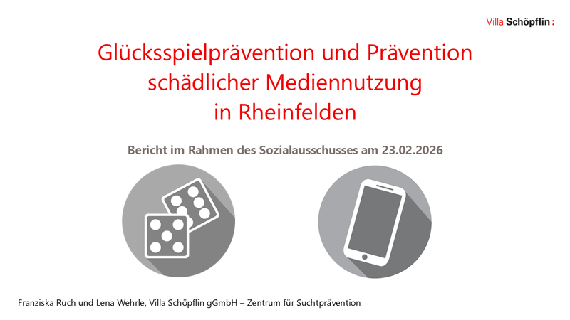 2017 führte die Villa Schöpflin eine Bestandsanalyse zu möglichen Glücksspielpräventionsmaßnahmen in Rheinfelden durch. Auf dieser Grundlage bietet die Villa Schöpflin seit 2018 jährlich maßgeschneiderte und bedarfsgerechte Maßnahmen an, die somit eine sinnvolle Aufstockung der landkreisgeförderten Prävention darstellen. Die jährliche Förderung durch die Stadt Rheinfelden beträgt 10.000 €.